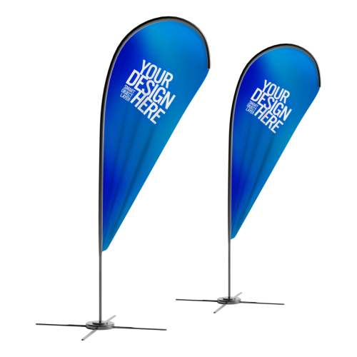Provide a modern look at your outdoor event and go for your own drop flags. Choose from two sizes, with a height of 190 or 245 centimeters. We then print your drop flags with your design in full color, on a translucent flag cloth. You can also simply order the drop flag separately, without a placement system.